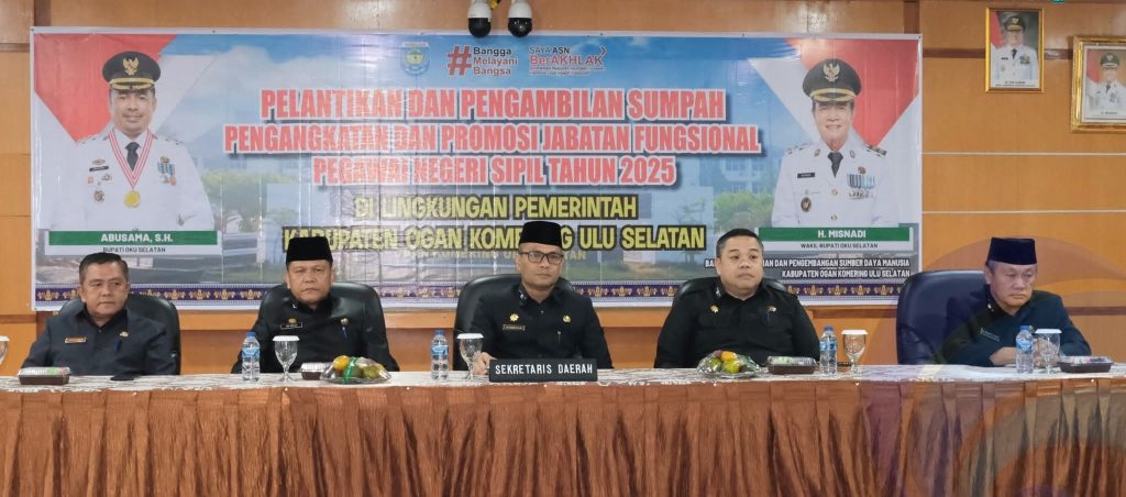 Sekretaris Daerah (Sekda) Ogan Komering Ulu Selatan (OKUS), H. M. Rahmattullah, S.STP.,M.M., Melantik dan Mengambilan Sumpah Jabatan Fungsional di Lingkungan Pemerintah Kabupaten Ogan Komering Ulu Selatan tahun 2025, Kamis (31/07/2025).