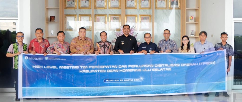 Bupati Ogan Komering Ulu Selatan (OKUS), Abusama, S.H., didampingi Wakil Bupati OKU Selatan, Drs. H. Misnadi, M.M.,M.Si memimpin rapat High Level Meeting (HLM) dalam rangka Monitoring pelaksanaan Elektronifikasi Transaksi Pemerintah Daerah (ETPD) yang meliputi Penerimaan Pajak Daerah, Penerimaan Retribusi Daerah, Pengelolaan Dana BLUD dan Belanja Daerah Tahun 2025, di Ruang Nagara Bhakti, Jam’at (22/08/2025).